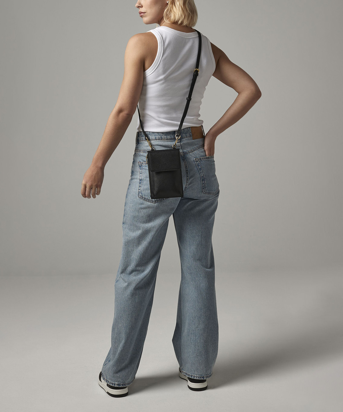 The Boutique phone carry case protects your tech on the go, worn as either a cross-body or shoulder bag by using the versatile interchangeable strap. Your phone can be kept safe in the button-fastening compartment with its soft protective lining, while the zipped back pocket provides space for keys, cards and other small essentials.