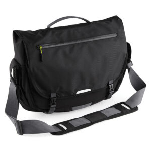 Lightweight yet durable. Water repellent design. Laptop compatible up to 15.6″. Padded laptop compartment. Back light attachment loop. Reflective accents. Zippered front pocket. Elasticated mesh side pocket. Multiple internal pockets. Secure clip closure. Interchangeable zip pullers. Webbing stabilising strap. Wide weight bearing shoulder strap. Padded grab handle.